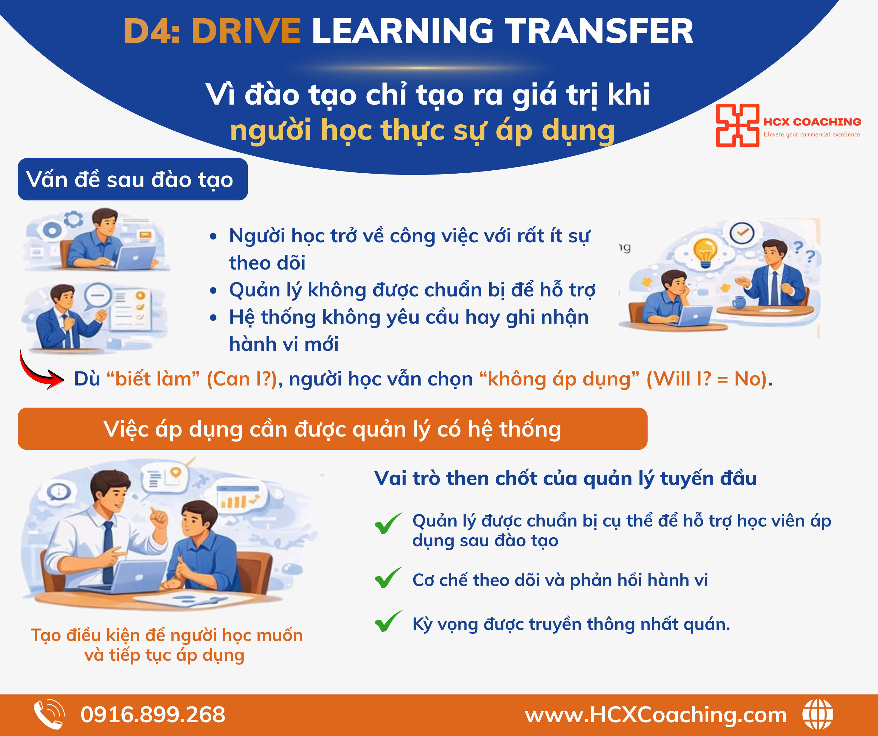 D4 – Drive Learning Transfer – Vì đào tạo chỉ tạo ra giá trị khi người học thực sự áp dụng