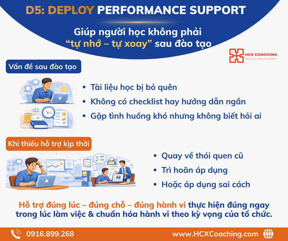 D5 – Deploy Performance Support – Giúp người học không phải “tự nhớ – tự xoay” sau đào tạo